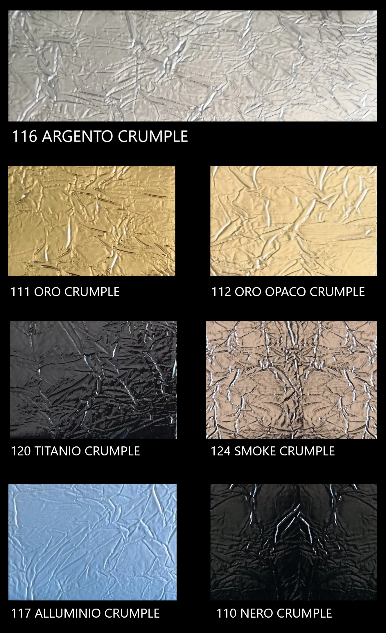Oro e argento crumple in pronta consegna.